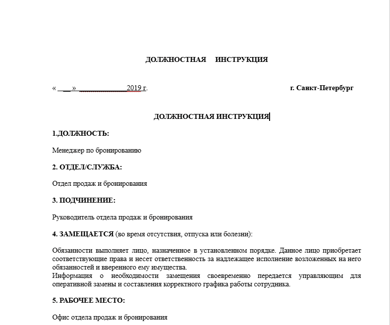 Шаблон должностной инструкции для гостиниц, который можно адаптировать под себя